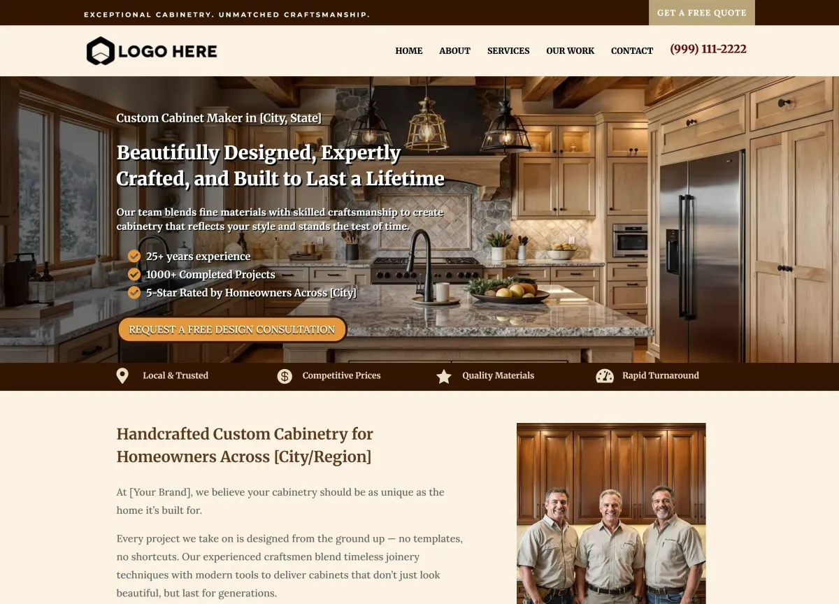 Whether you specialize in custom cabinetry, furniture, joinery, or any kind of woodworking, this template adapts perfectly to your craft — giving you a site that looks stunning and helps you win more projects.
